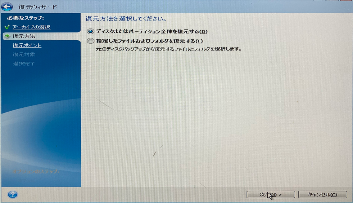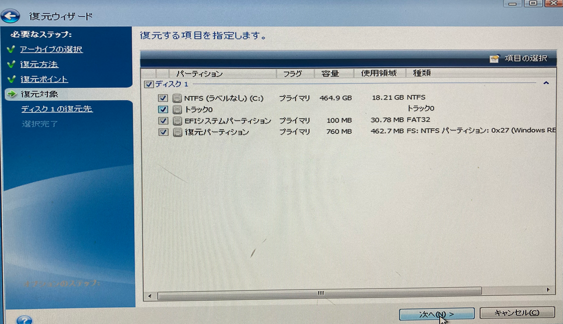 リカバリ(復元)の手順 ※Acronis2021を使用した復元方法